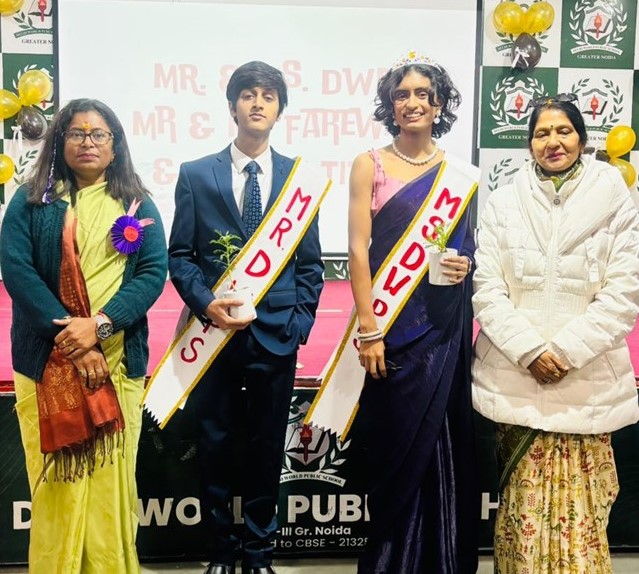 विदाई समारोह के दौरान रंगारंग सांस्कृतिक प्रस्तुतियां, मनोरंजक खेल गतिविधियां और केक कटिंग कार्यक्रम का आयोजन किया गया, जिसने माहौल को और भी जीवंत बना दिया। इस अवसर पर अक्षय गर्ग को ‘मिस्टर डीडब्ल्यूपीएस’ और तापसी कुमारी को ‘मिस डीडब्ल्यूपीएस’ चुना गया। वहीं यश गर्ग को ‘मिस्टर फेयरवेल’ और प्रियंशी सिंह को ‘मिस फेयरवेल’ की उपाधि से सम्मानित किया गया। इसके अलावा कई अन्य विद्यार्थियों को विभिन्न श्रेणियों में सम्मानित कर स्मृति चिह्न प्रदान किए गए।