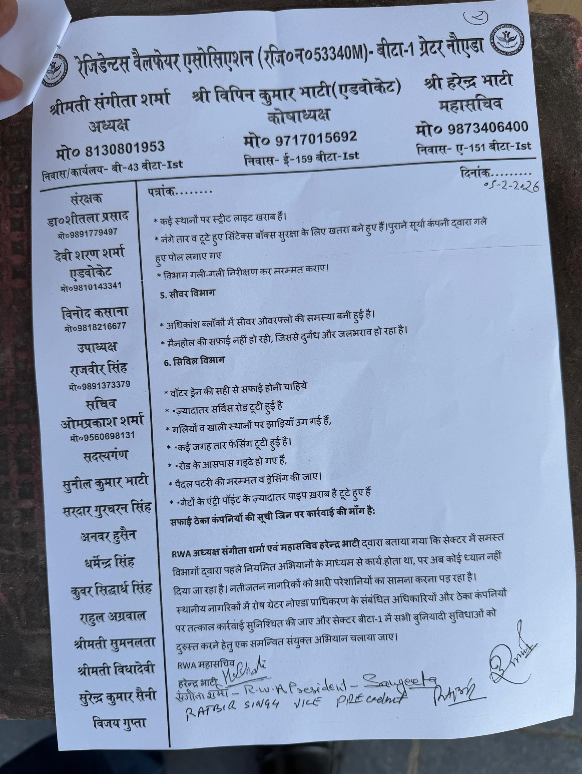 बीटा-1 में अव्यवस्थाओं को लेकर RWA ने की संयुक्त अभियान की मांग | Greater Noida Authority