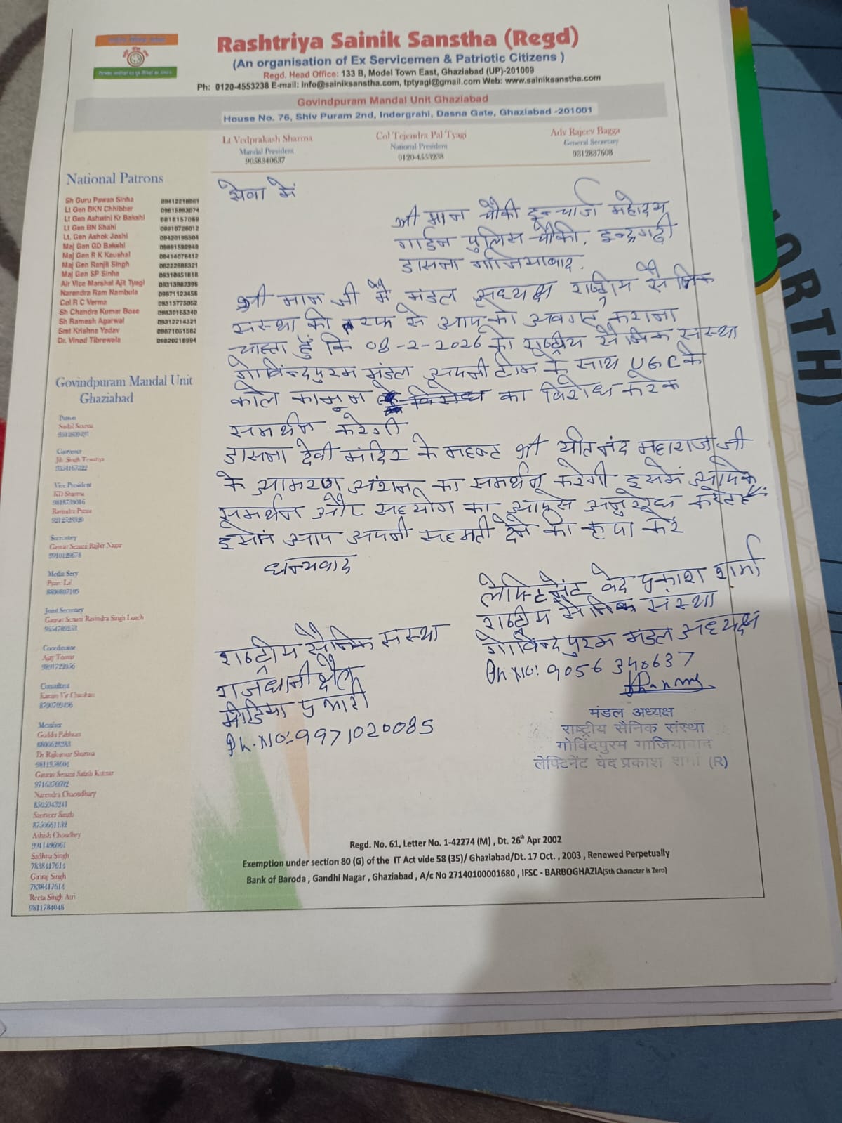 Ghaziabad News (08/02/2026): UGC के कथित काले कानून के विरोध में राष्ट्रीय सैनिक संस्था, गोविंदपुरम मंडल ने अपना समर्थन देने की घोषणा की है। संस्था के पदाधिकारियों के अनुसार 8 फरवरी 2026 को गोविंदपुरम मंडल के सभी सदस्य और पदाधिकारी डासना देवी मंदिर पहुंचकर वहां चल रहे आमरण अनशन को समर्थन देंगे।