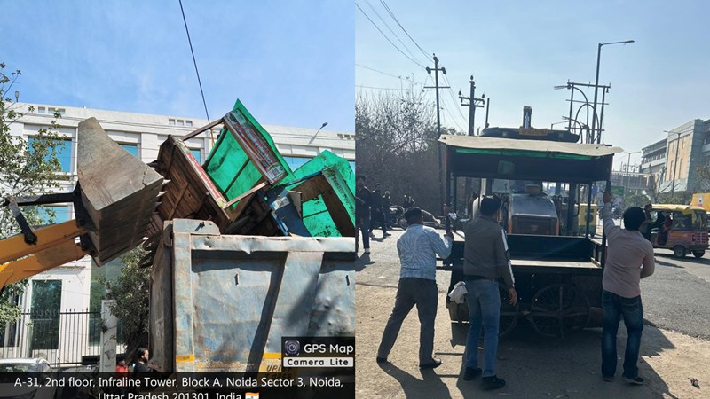 नौएदा प्राधिकरण का बुलडोजर अभियान: सड़कों से हटाए गए अवैध वेण्डर्स, जाममुक्त शहर का लक्ष्य