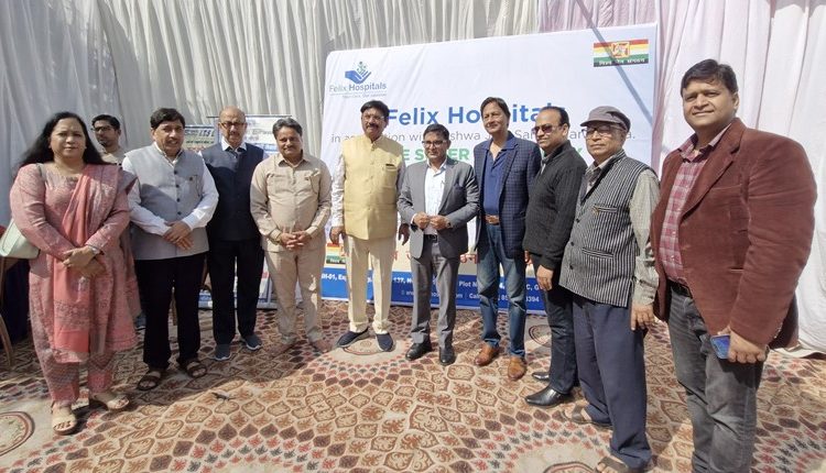 NOIDA News (15 फरवरी 2026): समाज सेवा और स्वास्थ्य जागरूकता (Health Awareness) को बढ़ावा देने के उद्देश्य से विश्व जैन संगठन नोएडा द्वारा सेक्टर-50 स्थित पारसनाथ दिगंबर जैन मंदिर में एक भव्य मेगा स्वास्थ्य कैंप (Mega Health Camp) का आयोजन किया गया। इस स्वास्थ्य शिविर का आयोजन फेलिक्स हॉस्पिटल, आईटीएस कॉलेज ग्रेटर नोएडा और सेंटर फॉर साइट नोएडा के सहयोग से किया गया, जिसमें बड़ी संख्या में लोगों ने पहुंचकर निःशुल्क स्वास्थ्य सेवाओं (Free Medical Services) का लाभ उठाया।