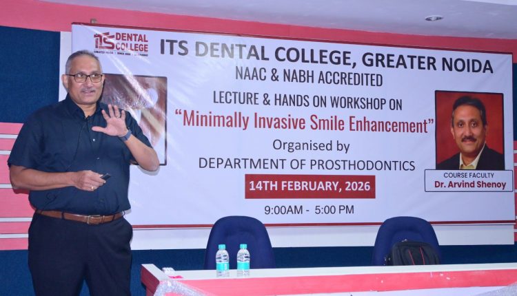 दिनांक 14, फरवरी 2026 को आई0टी0एस0 डेंटल काॅलेज, हास्पिटल एंड रिसर्च सेंटर, ग्रेटर नोएडा में प्रोस्थोडाॅन्टिक्स विभाग द्वारा “मिनिमली इनवेसिव स्माइल एन्हांसमेंट” विषय पर एक सतत दंत शिक्षा (सीडीई) कार्यक्रम का आयोजन किया गया। इस शैक्षणिक कार्यक्रम का उद्देश्य दंत चिकित्सकों, विद्यार्थियों एवं इंन्टन्र्स को आधुनिक और कम आक्रामक (मिनिमली इनवेसिव) तकनीकों के माध्यम से मधुर मुस्कान निखारने के नवीनतम तरीकों से अवगत कराना था।