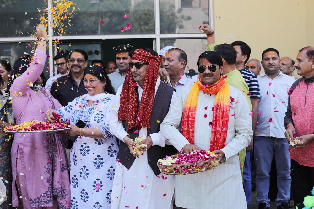 कार्यक्रम में आने वाले सभी लोगों का चंदन का टीका लगाकर स्वागत किया गया। कार्यक्रम में उपस्थित सभी लोगों ने एक दूसरे को गले मिलकर होली की बधाई दी। वरिष्ठ कवि मुकेश शर्मा ने अपने गीतों के माध्यम से सभी का दिल जीत लिया। ढोल नगाड़ो की थाप पर लोग खूब थिरके। ढोल की थाप पर नृत्य करने के साथ ही फूलों की बारिश कर लोगों ने होली खेली।