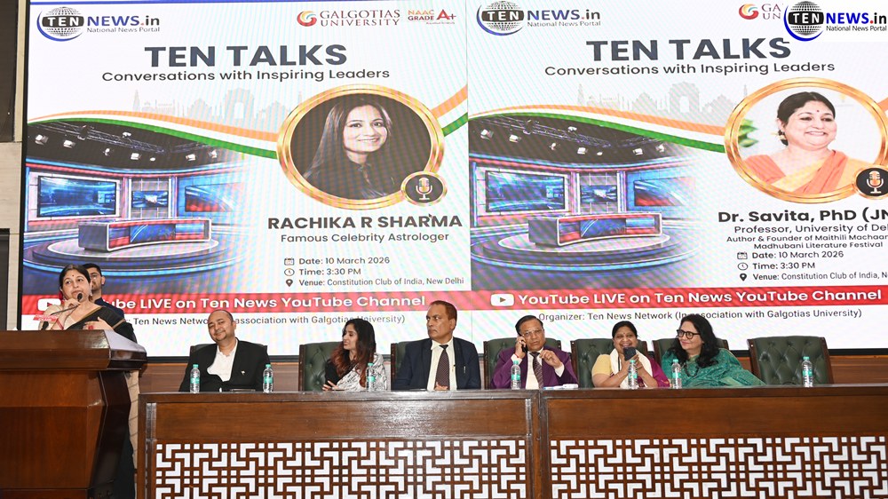 New Delhi News (12/03/2026): अग्रणी डिजिटल न्यूज़ प्लेटफॉर्म “टेन न्यूज़ नेटवर्क” द्वारा जनहित और राष्ट्रहित से जुड़े मुद्दों को सकारात्मक और निष्पक्ष रूप से सामने लाने की अपनी परंपरा को आगे बढ़ाते हुए मंगलवार, 10 मार्च को दिल्ली के कांस्टीट्यूशन क्लब में गलगोटियास यूनिवर्सिटी के सहयोग से एक विशेष ज्ञानवर्धक टॉक शो “टेन टॉक्स” का भव्य आयोजन किया गया। इस कार्यक्रम में राजनीति, शिक्षा, कानून, समाज सेवा और अध्यात्म जैसे विभिन्न क्षेत्रों से जुड़े प्रतिष्ठित व्यक्तित्वों ने हिस्सा लेकर अपने अनुभव और विचार साझा किए।