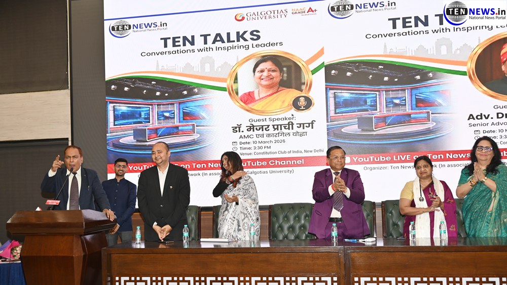New Delhi News (11/03/2026): अग्रणी डिजिटल न्यूज़ प्लेटफॉर्म “टेन न्यूज़ नेटवर्क” द्वारा जनहित और राष्ट्रहित से जुड़े मुद्दों को सकारात्मक और निष्पक्ष रूप से सामने लाने की अपनी परंपरा को आगे बढ़ाते हुए मंगलवार, 10 मार्च को दिल्ली के कांस्टीट्यूशन क्लब में गलगोटियास यूनिवर्सिटी के सहयोग से एक विशेष ज्ञानवर्धक टॉक शो “टेन टॉक्स” का भव्य आयोजन किया गया। इस कार्यक्रम में राजनीति, शिक्षा, कानून, समाज सेवा और अध्यात्म जैसे विभिन्न क्षेत्रों से जुड़े प्रतिष्ठित व्यक्तित्वों ने हिस्सा लेकर अपने अनुभव और विचार साझा किए।