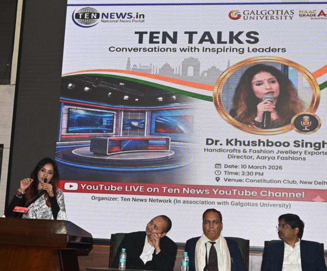 New Delhi News (12/03/2026): अग्रणी डिजिटल न्यूज़ प्लेटफॉर्म “टेन न्यूज़ नेटवर्क” द्वारा जनहित और राष्ट्रहित से जुड़े मुद्दों को सकारात्मक और निष्पक्ष रूप से सामने लाने की अपनी परंपरा को आगे बढ़ाते हुए मंगलवार, 10 मार्च को दिल्ली के कांस्टीट्यूशन क्लब में गलगोटियास यूनिवर्सिटी के सहयोग से एक विशेष ज्ञानवर्धक टॉक शो “टेन टॉक्स” का भव्य आयोजन किया गया। इस कार्यक्रम में राजनीति, शिक्षा, कानून, समाज सेवा और अध्यात्म जैसे विभिन्न क्षेत्रों से जुड़े प्रतिष्ठित व्यक्तित्वों ने हिस्सा लेकर अपने अनुभव और विचार साझा किए।