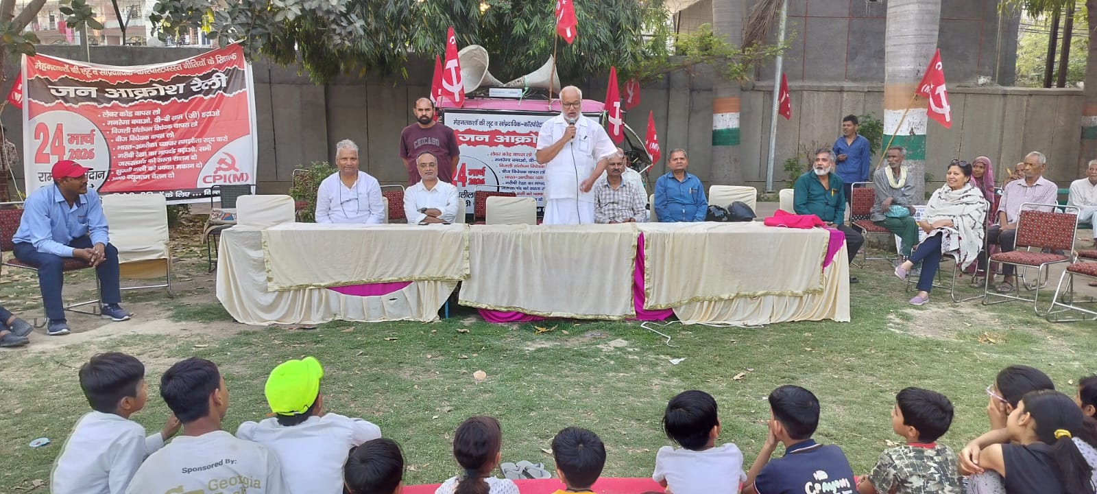 जनसभा को संबोधित करते हुए M. A. Baby, राष्ट्रीय महासचिव, Communist Party of India (Marxist), ने कहा कि देश में महंगाई, बेरोजगारी और रसोई गैस की बढ़ती कीमतों ने आम नागरिकों का जीवन प्रभावित किया है। उन्होंने आरोप लगाया कि वर्तमान नीतियां बड़े कॉर्पोरेट घरानों के हितों को प्राथमिकता देती हैं, जबकि मजदूरों और आम जनता की समस्याओं पर पर्याप्त ध्यान नहीं दिया जा रहा।