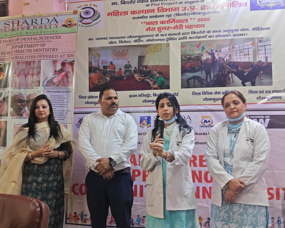 Greater Noida News (18/03/2026): शारदा यूनिवर्सिटी के शारदा स्कूल ऑफ लॉ के प्रो बोनो क्लब (लीगल एड सोसाइटी) की जुवेनाइल विंग ने, शारदा स्कूल ऑफ डेंटल साइंसेज़ के साथ मिलकर, गौतम बुद्ध नगर स्थित सरकारी जुवेनाइल ऑब्जर्वेशन होम (बालकों के लिए) में रहने वाले बच्चों के लिए ओरल हेल्थ अवेयरनेस और डेंटल स्क्रीनिंग ड्राइव का आयोजन किया।