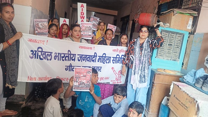 Noida News (19/03/2026): बढ़ती महंगाई, बेरोजगारी और रसोई गैस की कीमतों में लगातार हो रही वृद्धि के विरोध में बुधवार को सेक्टर-49 स्थित प्रहलाद कॉलोनी, गांव बरौला में महिलाओं ने जोरदार प्रदर्शन किया। यह विरोध प्रदर्शन अखिल भारतीय जनवादी महिला समिति की गौतम बुद्ध नगर इकाई के नेतृत्व में आयोजित किया गया, जिसमें बड़ी संख्या में स्थानीय महिलाओं ने हिस्सा लिया।