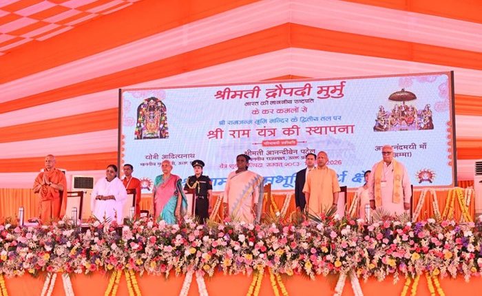 National News (19 मार्च 2026): राष्ट्रपति द्रौपदी मुर्मु ने आज (19 मार्च, 2026) उत्तर प्रदेश के अयोध्या में श्री राम जन्मभूमि मंदिर जाकर राम लला के दर्शन किये। उन्होंने राम जन्मभूमि मंदिर के भीतर विभिन्न स्थानों पर दर्शन एवं आरती की और श्री राम यंत्र स्थापना और पूजन भी किया।