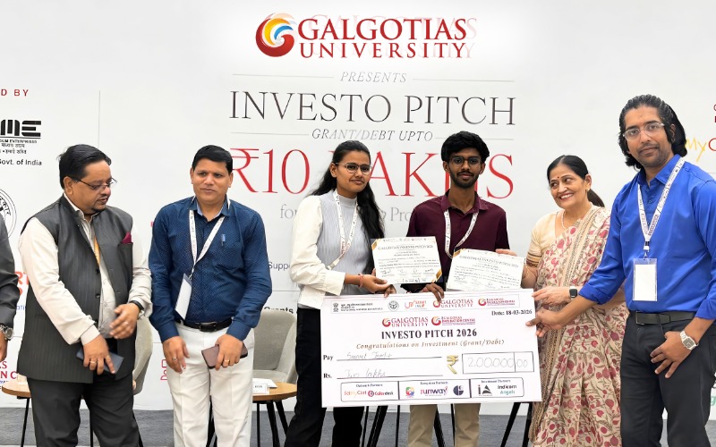 ग्रेटर नोएडा, मार्च 2026: गलगोटियास विश्वविद्यालय ने 17-18 मार्च 2026 को दो दिवसीय कार्यक्रम “गलगोटियास इन्वेस्टो पिच 2026” का सफल आयोजन किया। इस कार्यक्रम का उद्देश्य युवाओं में नवाचार और उद्यमिता को बढ़ावा देना था। इसमें उभरते उद्यमियों को अपने विचार प्रस्तुत करने और निवेशकों व उद्योग विशेषज्ञों से जुड़ने का अवसर मिला।