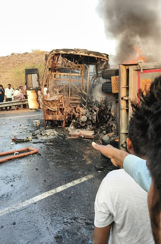 आंध्र प्रदेश में भीषण बस और ट्रक हुई भीषण टकराव , आग में जिंदा जले 13 यात्री