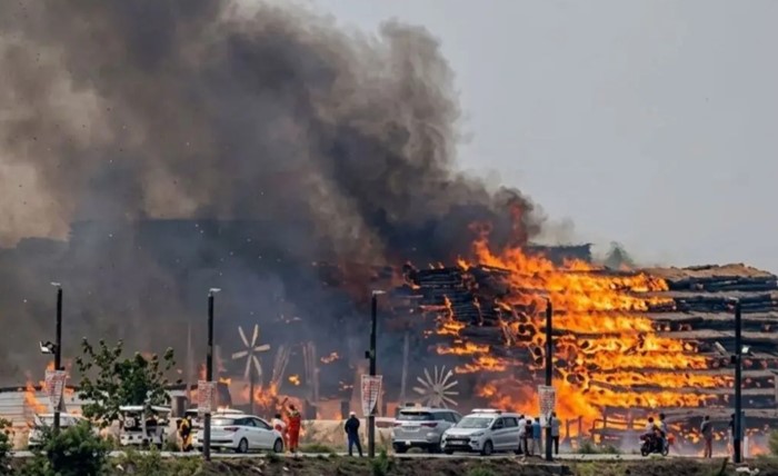 Uttar Pradesh News (28 March 2026): अयोध्या में सरयू नदी के किनारे आयोजित एक महायज्ञ के पंडाल में अचानक आग लगने से हड़कंप मच गया। जिलाधिकारी निखिल टीकाराम फुंडे ने बताया कि घटना की सूचना मिलते ही प्रशासन ने तुरंत कार्रवाई करते हुए दमकल विभाग की गाड़ियों को मौके पर भेजा, जिसके बाद आग पर समय रहते काबू पा लिया गया।