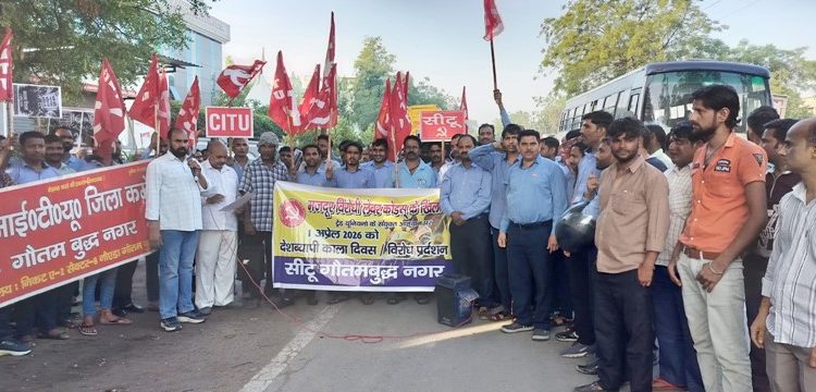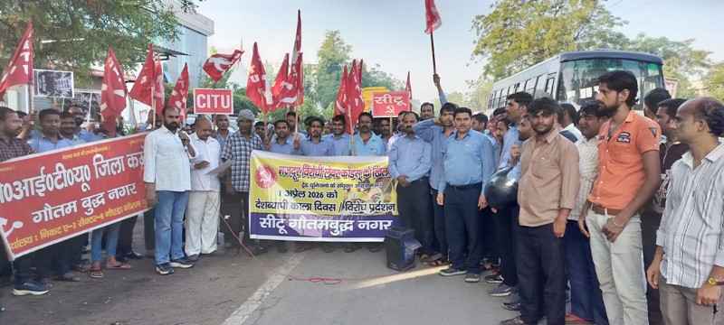 Gautam Buddha Nagar News (01/04/2026): केंद्रीय ट्रेड यूनियनों और स्वतंत्र फेडरेशनों के संयुक्त आह्वान पर बुधवार को गौतम बुद्ध नगर जिले में मजदूर संगठनों ने ‘काला दिवस’ मनाते हुए केंद्र सरकार की चार नई श्रम संहिताओं के खिलाफ व्यापक विरोध प्रदर्शन किया। जिले के विभिन्न औद्योगिक क्षेत्रों, कारखानों, निर्माण स्थलों और संस्थानों में काम करने वाले हजारों श्रमिकों ने काले बैज और काली पट्टी बांधकर काम किया तथा दोपहर के अवकाश के दौरान गेट मीटिंग और विरोध सभाएं आयोजित कर अपना रोष व्यक्त किया।