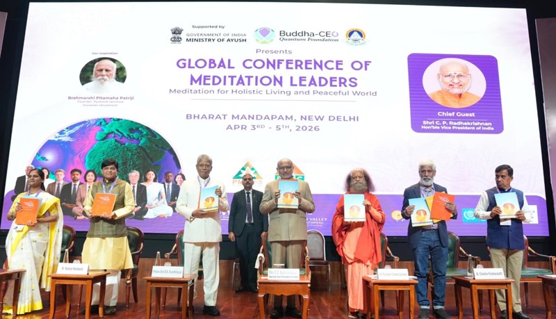 National News (05 अप्रैल 2026): उपराष्ट्रपति सी.पी. राधाकृष्णन ने आज भारत मंडपम में आयोजित ध्यान नेताओं के वैश्विक सम्मेलन – समग्र जीवन और शांतिपूर्ण विश्व के लिए ध्यान को संबोधित किया। इस सम्मेलन का आयोजन पिरामिड स्पिरिचुअल सोसाइटीज मूवमेंट और बुद्ध-सीईओ क्वांटम फाउंडेशन ने किया।