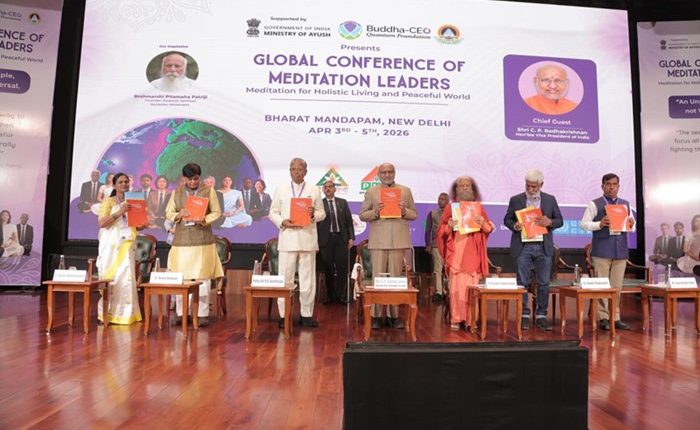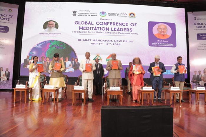 New Delhi News (06 अप्रैल 2026): नई दिल्ली के भारत मंडपम में आयोजित ग्लोबल कॉन्फ्रेंस ऑफ मेडिटेशन लीडर्स (Global Conference of Meditation Leaders) में देश-विदेश के आध्यात्मिक नेताओं, नीति निर्माताओं और विद्वानों ने ध्यान (Meditation) को शांत और समृद्ध विश्व निर्माण का महत्वपूर्ण माध्यम बताया। कार्यक्रम में भारत के उपराष्ट्रपति डॉ. सी. पी. राधाकृष्णन मुख्य अतिथि के रूप में शामिल हुए और उन्होंने ध्यान को आधुनिक समय की सबसे बड़ी आवश्यकता बताया।