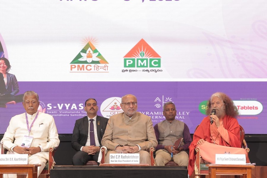 अपने संबोधन में उपराष्ट्रपति डॉ. सी. पी. राधाकृष्णन ने कहा कि आज दुनिया संघर्ष, तनाव और असहिष्णुता (Intolerance) के दौर से गुजर रही है। उन्होंने कहा कि युद्ध केवल देशों के बीच नहीं, बल्कि परिवारों और समाज के भीतर भी देखने को मिल रहे हैं, जिसका मुख्य कारण अहंकार और संवाद की कमी है। उन्होंने कहा कि ध्यान व्यक्ति को आत्मचिंतन (Self-Reflection), धैर्य और बेहतर निर्णय क्षमता प्रदान करता है, जिससे समाज में सकारात्मक परिवर्तन संभव है।