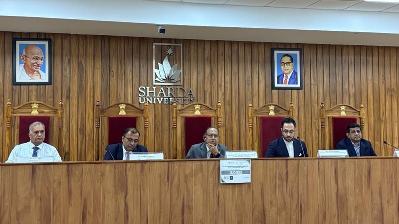 Greater Noida (07/04/2026): शारदा स्कूल ऑफ लॉ, शारदा विश्वविद्यालय द्वारा 10वीं आनंद स्वरूप गुप्ता मेमोरियल इंटरनेशनल मूट कोर्ट प्रतियोगिता, 2026 का वैलिडिक्टरी समारोह चाणक्य ऑडिटोरियम में गरिमामय एवं भव्य वातावरण में आयोजित किया गया। इस प्रतिष्ठित आयोजन में देश-विदेश से 40 से अधिक टीमों ने भाग लिया और अपने उत्कृष्ट वकालत कौशल, शोध क्षमता एवं विधिक तर्कशक्ति का प्रभावशाली प्रदर्शन किया।