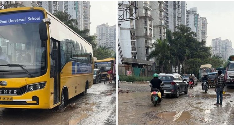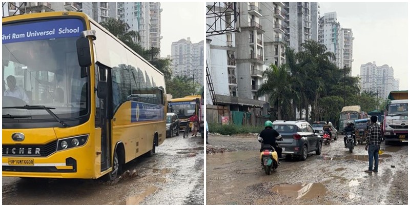 ग्रेटर नोएडा वेस्ट में जर्जर सड़क से स्कूली बच्चों की सुरक्षा पर खतरा, बस गड्ढे में फंसने से बढ़ी चिंता