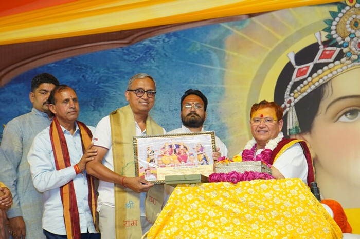 भगवान राम के जन्म प्रसंग का वर्णन करते समय जैसे ही कथा व्यास ने भजन गाया, श्रोता भाव-विभोर होकर झूम उठे। ऐसा प्रतीत हुआ मानो वास्तव में पंडाल में भगवान का जन्म हो रहा हो। पूरा पंडाल “राममय” हो गया और चारों ओर पुष्पों की वर्षा होने लगी। हनुमान जी की तरह भगवान के नाम का सुमिरन और कीर्तन जीवन का हिस्सा बने—इन सभी बातों को महाराज जी ने बड़ी सुगमता से कथा श्रोताओं के सामने रखकर सभी को धन्य किया।