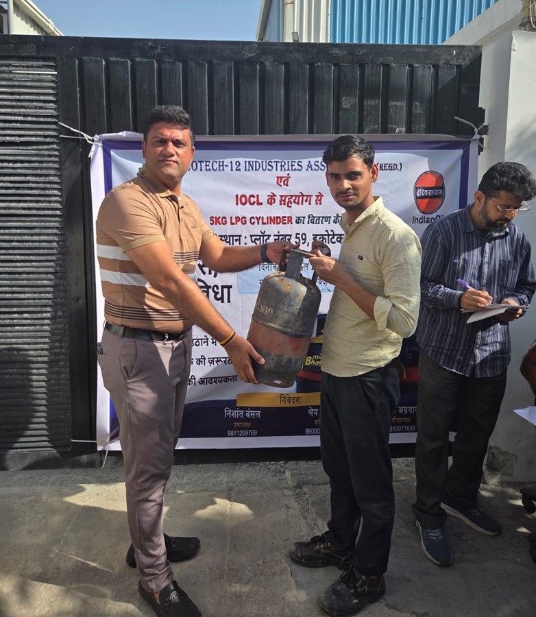 इकोटेक-12 इंडस्ट्रीज एसोसिएशन और इंडियन ऑयल ने किया 5kg सिलिंडर वितरण कैंप का आयोजन
