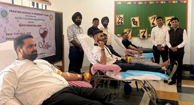 Greater Noida News (11/04/2026): समाज सेवा की भावना को बढ़ावा देते हुए रोटरी क्लब ग्रीन ग्रेटर नोएडा और इंटरैक्ट क्लब प्रज्ञान स्कूल के संयुक्त तत्वावधान में रक्तदान शिविर का आयोजन किया गया। इस शिविर में स्कूल के अभिभावकों ने उत्साहपूर्वक भाग लेते हुए मानवता के इस अभियान को सफल बनाने में महत्वपूर्ण योगदान दिया।