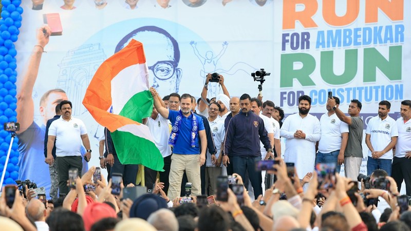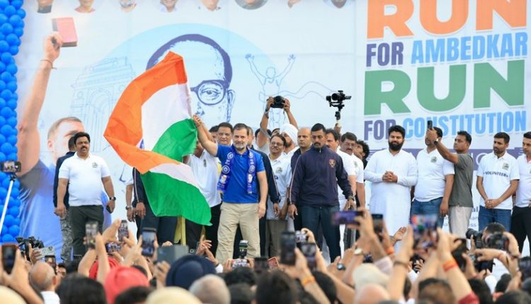 मैराथन के दौरान राहुल गांधी ने अपने संबोधन में संविधान की महत्ता को रेखांकित करते हुए कहा कि भीमराव अंबेडकर का दिया हुआ संविधान ही भारत की आत्मा है। उन्होंने कहा कि अगर संविधान नहीं होता तो आज का भारत इस रूप में दिखाई नहीं देता। उनके मुताबिक संविधान केवल एक दस्तावेज नहीं बल्कि देश को समानता और न्याय के मार्ग पर ले जाने वाला आधार है।
