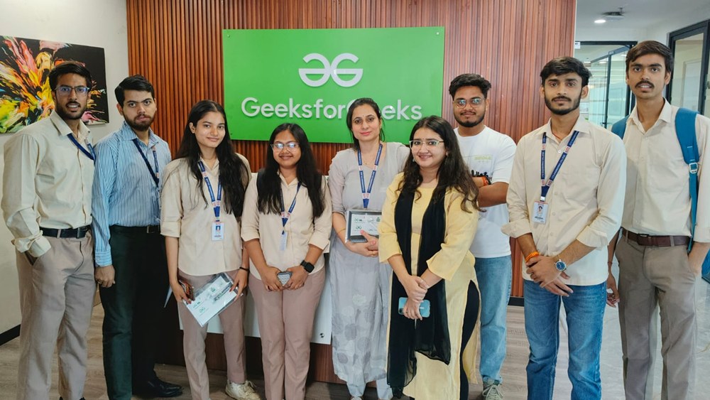 कॉलेज Geeks for Geeks, नोएडा का हार्दिक आभार व्यक्त करता है, जिन्होंने छात्रों को आत्मीयता के साथ स्वागत किया और एक प्रेरणादायी शिक्षण अनुभव प्रदान किया। भ्रमण का समापन प्रेरणादायी रहा, जिसमें छात्रों ने अपने अकादमिक ज्ञान को वास्तविक तकनीकी वातावरण में लागू करने की प्रेरणा प्राप्त की।