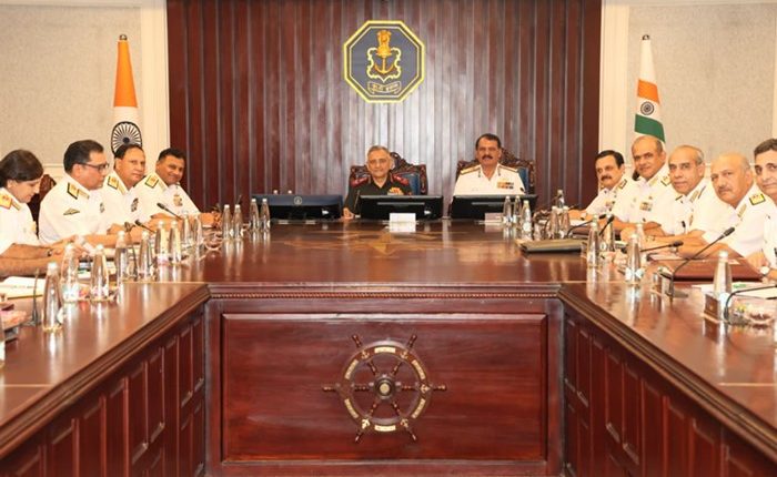 चीफ ऑफ डिफेंस स्टाफ जनरल अनिल चौहान ने बदलते भू-राजनीतिक उथल-पुथल से संबंधित मामलों पर नौसेना कमांडरों को संबोधित किया और उनसे बातचीत की। उन्होंने नौसेना से आर्थिक और तकनीकी घटकों सहित युद्ध के तेजी से विकसित हो रहे स्वरूप के लिए योजना बनाने का आग्रह किया।