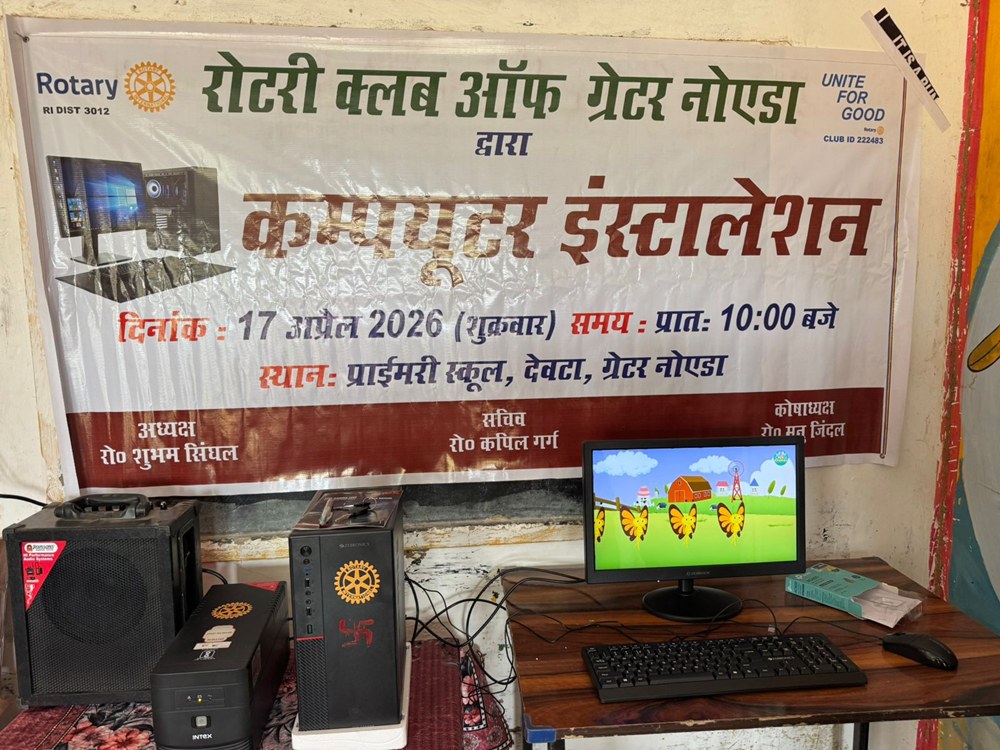 Greater Noida News (17/04/2026): ग्रामीण क्षेत्र के बच्चों को आधुनिक शिक्षा से जोड़ने की दिशा में रोटरी क्लब ग्रेटर नोएडा ने सराहनीय पहल करते हुए आज शुक्रवार उच्च प्राथमिक विद्यालय देवटा, ब्लॉक दनकौर गौतमबुद्ध नगर में उच्च प्राथमिक विद्यालय देवटा में एक कंप्यूटर सिस्टम स्थापित कराया। इस कदम से छात्रों को डिजिटल लर्निंग की सुविधा मिलेगी और उनकी पढ़ाई अधिक प्रभावी हो सकेगी।