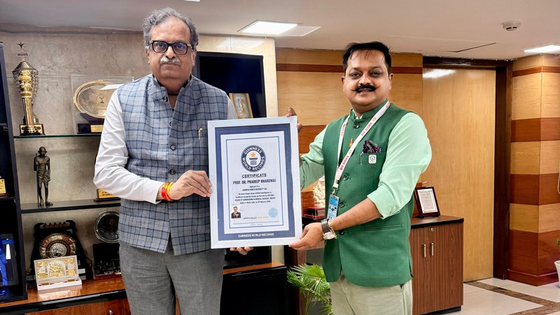 इस गौरवपूर्ण अवसर पर राष्ट्रीय चिकित्सा आयोग के अध्यक्ष और नेशनल बोर्ड ऑफ एग्जामिनेशन इन मेडिकल साइंसेज के चेयरमैन, प्रसिद्ध कार्डियोथोरेसिक सर्जन डॉ. अभिजात शेठ द्वारा डॉ. प्रदीप भारद्वाज को गिनीज वर्ल्ड रिकॉर्ड्स का आधिकारिक प्रमाणपत्र और प्रतिष्ठित पदक प्रदान किया गया। यह सम्मान न केवल उनकी व्यक्तिगत उपलब्धि है, बल्कि भारत की उभरती स्वास्थ्य शिक्षा प्रणाली के लिए भी गर्व का विषय बन गया है।