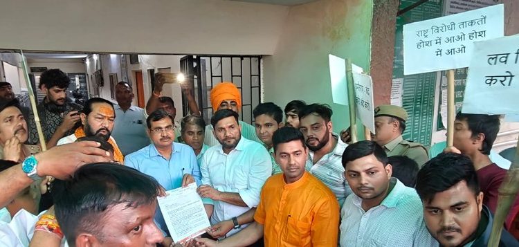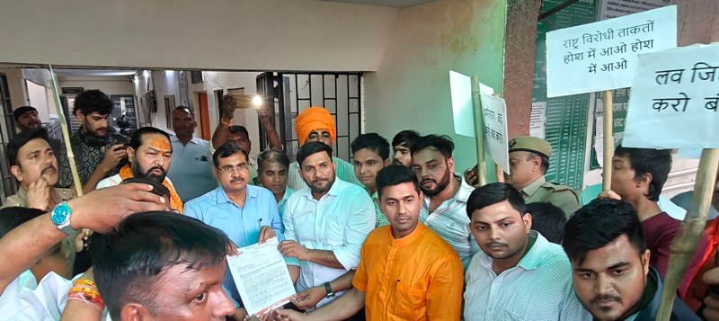 इस प्रदर्शन में मंत्री दिनेश महावर, संयोजक विनोद चौहान, विभाग संगठन मंत्री मुनेंद्र, विभाग मंत्री ललित सहित सैकड़ों कार्यकर्ता मौजूद रहे। प्रदर्शन के दौरान जिला प्रशासन के माध्यम से महामहिम राष्ट्रपति के नाम ज्ञापन सौंपा गया, जिसमें लव जिहाद, अवैध धर्मांतरण और राष्ट्रविरोधी गतिविधियों पर कठोर कानून और त्वरित कार्रवाई की मांग की गई।