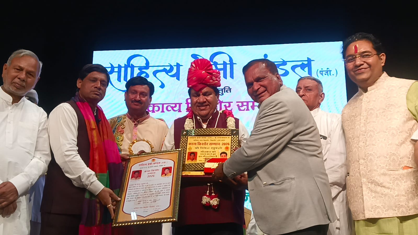 New Delhi News (20/04/2026): साहित्य प्रेमी मण्डल (पंजी.) के तत्वावधान में महाकवि निराला की स्मृति में ‘स्वर गंगा’ कवि सम्मेलन एवं सम्मान समारोह रविवार, 19 अप्रैल को हिन्दी भवन, नई दिल्ली में भव्य रूप से संपन्न हुआ। यह कार्यक्रम बृज शुक्ल ‘घायल’, अल्हड़ बीकानेरी, गोस्वामी आर.सी. भारती और नन्द किशोर ‘किशोर’ को भी समर्पित रहा। कार्यक्रम का संचालन अपने अनोखे अंदाज में हास्य व्यंग के जाने माने कवि प्रवीण शुक्ल ने किया। कार्यक्रम में संस्था के एडवोकेट संरक्षक मुकेश शर्मा भी उपस्थित रहे।