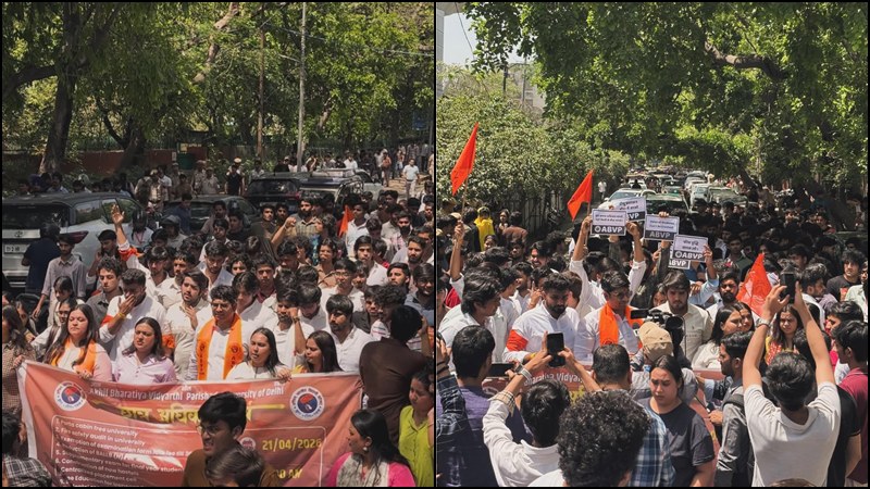 New Delhi News (21 अप्रैल 2026): अखिल भारतीय विद्यार्थी परिषद, दिल्ली ने आज दिल्ली विश्वविद्यालय के छात्रों की मूलभूत समस्याओं और अधिकारों को लेकर विश्वविद्यालय परिसर में विशाल ‘छात्र अधिकार मार्च’ का आयोजन किया। इस विरोध प्रदर्शन में विश्वविद्यालय के विभिन्न कॉलेजों से आए हजारों छात्र-छात्राओं ने हिस्सा लिया। अभाविप ने दिल्ली विश्वविद्यालय प्रशासन के समक्ष 12 प्रमुख मांगों का एक माँगपत्र रखा है, जो छात्रों के शैक्षणिक और बुनियादी ढांचे से जुड़े सुधारों पर केंद्रित है।