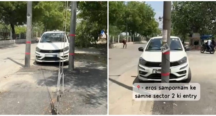 Greater Noida News (23/04/2026): ग्रेटर नोएडा वेस्ट स्थित इरोस संपूर्णम के सामने सेक्टर-2 की एंट्री के बाहर ग्रेटर नोएडा प्राधिकरण द्वारा सड़क निर्माण कार्य कराया गया है, लेकिन निर्माण के बाद भी सड़क के बीचों-बीच बिजली के खंभे मौजूद हैं, जिससे यह स्थान गंभीर दुर्घटना संभावित क्षेत्र बन गया है।