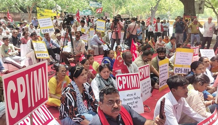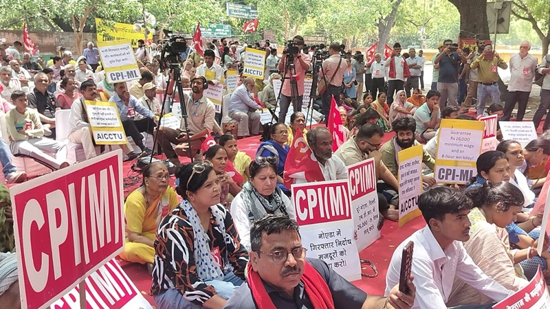 New Delhi News (24/04/2026): नोएडा, दिल्ली-एनसीआर के औद्योगिक क्षेत्रों में मज़दूरों पर बढ़ते दमन, गिरफ्तारियों और श्रम कानूनों के खुलेआम उल्लंघन के विरोध में आज छह वाम दलों ने जंतर-मंतर पर संयुक्त प्रदर्शन किया। भारत की कम्युनिस्ट पार्टी (मार्क्सवादी), भारतीय कम्युनिस्ट पार्टी, भाकपा (माले), रिवोल्यूशनरी सोशलिस्ट पार्टी, फॉरवर्ड ब्लॉक और सीजीपीआई के आह्वान पर नोएडा, गाजियाबाद, गुरुग्राम और दिल्ली के सैकड़ों मज़दूर एवं नेता एकजुट हुए।