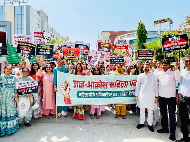 ग्रेटर नोएडा में नारी सम्मान के समर्थन में भाजपा की जनआक्रोश पदयात्रा