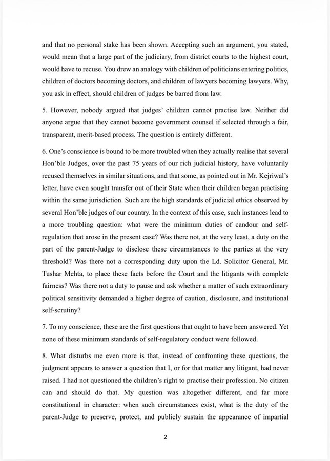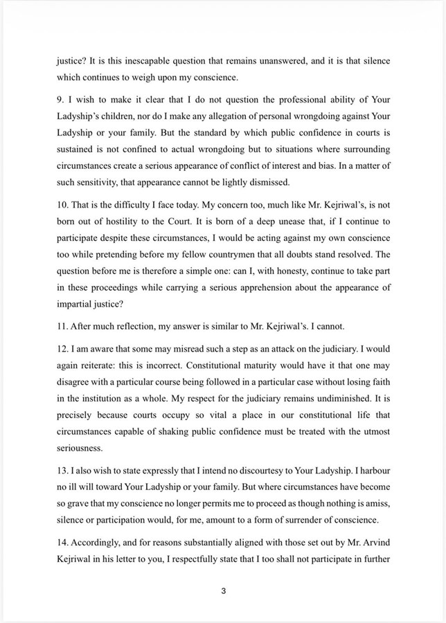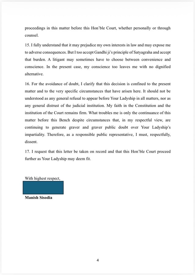 अपने पत्र में सिसोदिया ने न्यायिक व्यवस्था को लेकर गहरा असंतोष जताते हुए लिखा कि उन्हें अब इस प्रणाली से न्याय की कोई उम्मीद नहीं बची है। उन्होंने कहा कि मौजूदा परिस्थितियों में सत्याग्रह ही उनका एकमात्र रास्ता रह गया है। उनका यह बयान सीधे तौर पर न्यायपालिका और जांच एजेंसियों की कार्यप्रणाली पर सवाल खड़ा करता है। गौरतलब है कि दिल्ली आबकारी मामले में सिसोदिया समेत कई नेता आरोपी हैं और मामला फिलहाल हाई कोर्ट में विचाराधीन है।