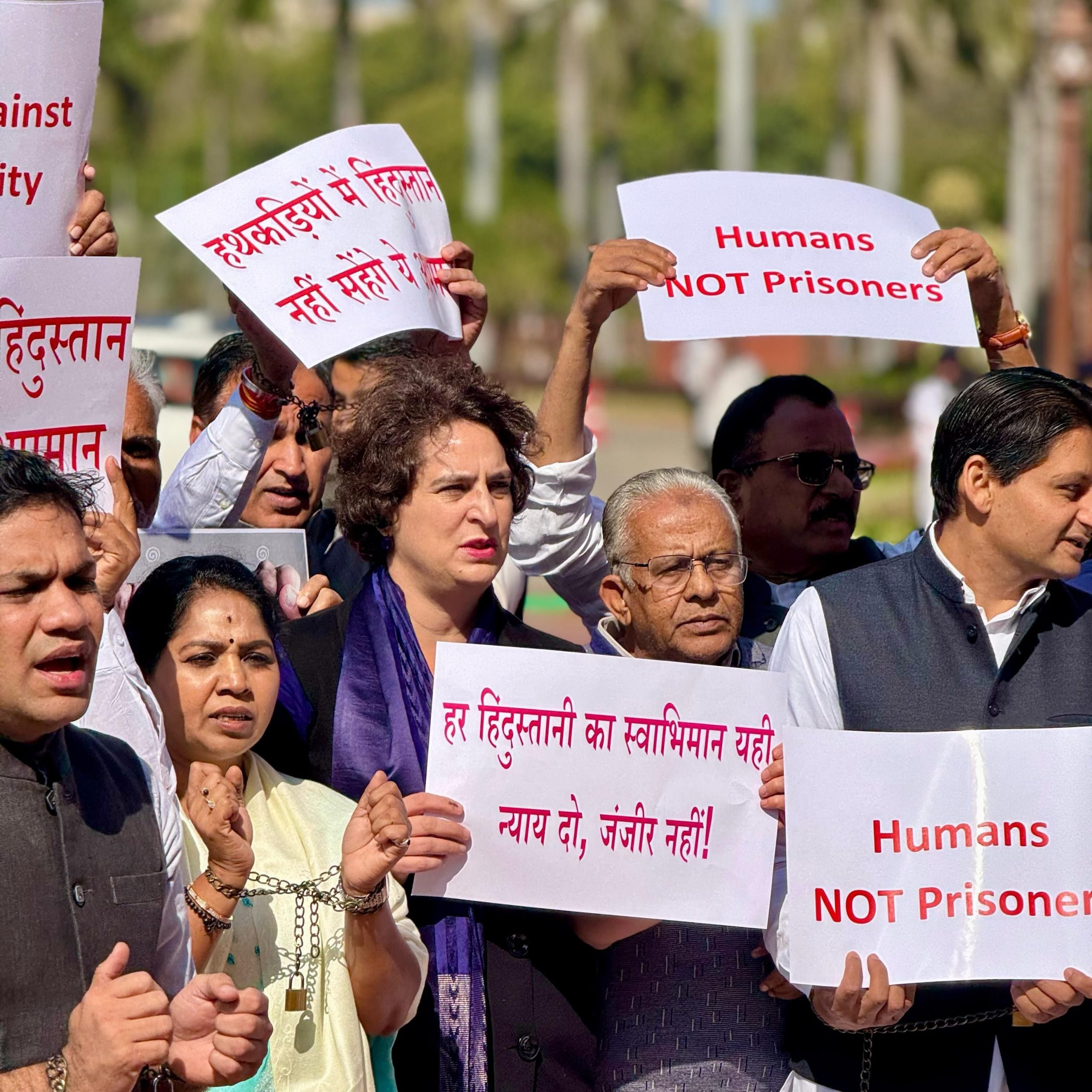 प्रदर्शनकारियों ने ‘ह्यूमन्स, नॉट प्रिजनर्स’ के नारे लगाते हुए कहा कि भारतीयों के साथ ऐसा व्यवहार बर्दाश्त नहीं किया जाएगा। उन्होंने अंतरराष्ट्रीय मंचों पर इस मुद्दे को उठाने की मांग भी की और अमेरिका से भारतीय नागरिकों के साथ न्यायसंगत व्यवहार की अपील की।