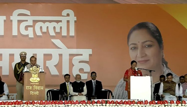 नई दिल्ली (20 फरवरी 2025): दिल्ली की ऐतिहासिक रामलीला मैदान में रेखा गुप्ता ने मुख्यमंत्री पद की शपथ ली, उनके साथ 6 अन्य विधायक प्रवेश वर्मा, मनजिंदर सिंह सिरसा, कपिल मिश्रा, आशीष सूद, पंकज सिंह, और रविंदर सिंह इंद्रराज ने भी मंत्री पद की शपथ ग्रहण की। इस समारोह में प्रधानमंत्री नरेंद्र मोदी, केंद्रीय गृह मंत्री अमित शाह, रक्षा मंत्री राजनाथ सिंह, भाजपा अध्यक्ष जेपी नड्डा, और आंध्र प्रदेश के मुख्यमंत्री एन. चंद्रबाबू नायडू सहित कई प्रमुख नेता उपस्थित रहे।