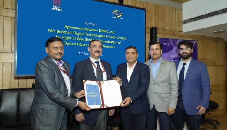 नई दिल्ली (21 फरवरी 2025): दिल्ली मेट्रो रेल कॉरपोरेशन (DMRC) ने हाई-स्पीड इंटरनेट कनेक्टिविटी को मजबूत करने के लिए M/s Beckhaul Digital Technologies Pvt. Ltd. के साथ एक समझौता किया है। इस समझौते के तहत, पूरे दिल्ली-एनसीआर मेट्रो नेटवर्क में 700 किलोमीटर ऑप्टिकल फाइबर केबल बिछाई जाएगी।