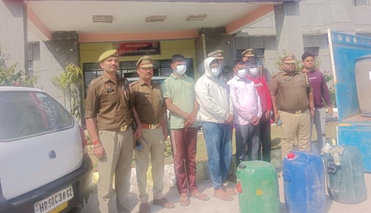 ग्रेटर नोएडा, (23 फरवरी 2025): ग्रेटर नोएडा पुलिस ने एक बड़े तेल चोरी गैंग का भंडाफोड़ करते हुए चार आरोपियों को गिरफ्तार किया है। ये आरोपी हाईवे पर खड़ी बड़ी गाड़ियों से पेट्रोल और डीजल चोरी कर उसे अवैध रूप से बेचते थे। थाना ईकोटेक प्रथम पुलिस ने लोकल इंटेलिजेंस से मिली गुप्त सूचना के आधार पर घरबरा गेट के पास से चार आरोपियों – तरुण, संतोष वीके, सोनू और खुशीराम – को रंगे हाथों गिरफ्तार किया। इनके कब्जे से 1250 लीटर चोरी का तेल, 8000 रुपये नकद (जो चोरी किए गए तेल की बिक्री से प्राप्त हुए थे), और घटना में प्रयुक्त वाहन – एक छोटा हाथी व एक अल्टो कार – बरामद की गई।