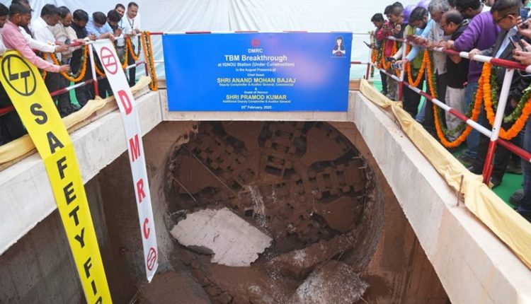 दिल्ली मेट्रो के फेज-4 गोल्डन लाइन पर IGNOU मेट्रो स्टेशन पर TBM ने किया टनल ब्रेकथ्रू
