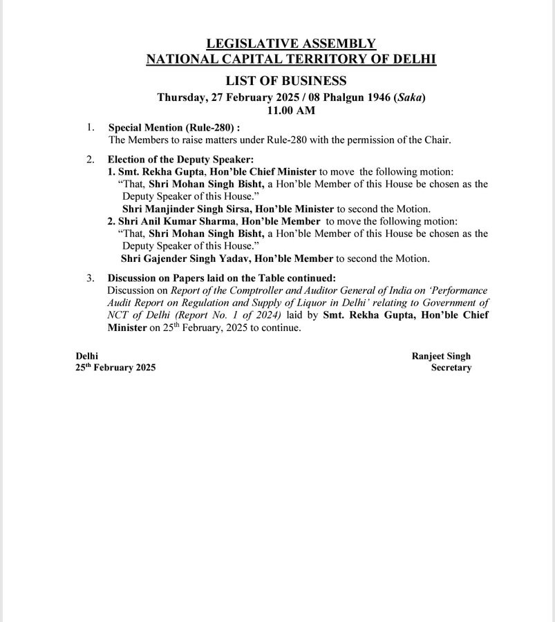 नई दिल्ली (26 फरवरी 2025): दिल्ली विधानसभा में भारतीय जनता पार्टी (BJP) के विधायक मोहन सिंह बिष्ट को बड़ी जिम्मेदारी मिलने जा रही है। बताया जा रहा है कि बिष्ट को दिल्ली विधानसभा का डिप्टी स्पीकर बनाया जाएगा। वह हाल ही में मुस्लिम बाहुल्य क्षेत्र माने जाने वाले मुस्तफाबाद से विधानसभा चुनाव जीतकर आए हैं। उनकी नियुक्ति को भाजपा की रणनीतिक जीत के तौर पर देखा जा रहा है। विधानसभा में उनके नाम का प्रस्ताव मुख्यमंत्री रेखा गुप्ता पेश करेंगी, जिसके बाद यह तय माना जा रहा है कि वह डिप्टी स्पीकर बन जाएंगे।