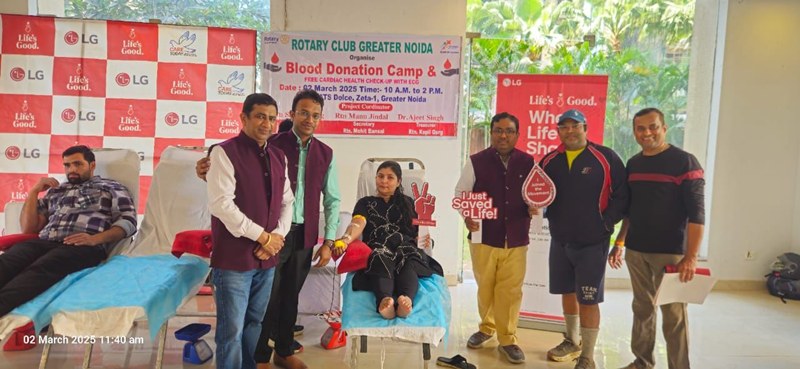 ग्रेटर नोएडा, (02 मार्च 2025): रोटरी क्लब ग्रेटर नोएडा द्वारा आज एटीएस डोल्से सोसाइटी, ग्रेटर नोएडा में एक ब्लड डोनेशन और कार्डियक हेल्थ चेकअप कैंप का आयोजन किया गया। यह कैंप सुबह 10:00 बजे से दोपहर 2:00 बजे तक चला, जिसमें सोसाइटी के निवासियों और अन्य स्थानीय लोगों ने उत्साहपूर्वक भाग लिया।