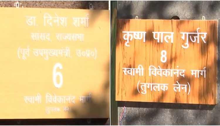 नई दिल्ली (07 मार्च 2025): दिल्ली में भाजपा के राज्यसभा सांसद दिनेश शर्मा और केंद्रीय मंत्री कृष्णपाल गुर्जर ने अपने-अपने सरकारी आवास की नेमप्लेट बदलकर स्वामी विवेकानंद मार्ग कर लीया है। हालांकि, नेमप्लेट पर नीचे ब्रैकेट में पुराने नाम तुगलक लेन को भी दर्ज किया गया है। इसे केंद्र सरकार की संभावित घोषणा से पहले का एक संकेत माना जा रहा है, जिससे यह अटकलें तेज हो गई हैं कि आने वाले दिनों में आधिकारिक रूप से इस मार्ग का नाम बदला जा सकता है। इस कदम को भारतीय संस्कृति और राष्ट्रवाद को बढ़ावा देने की सरकार की नीति के हिस्से के रूप में देखा जा रहा है।